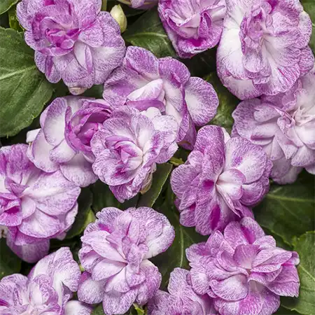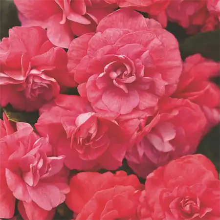 Light up any shady area with masses of blooms that resemble miniature rosebuds; no deadheading necessary for this double impatiens plant. It blooms from spring to frost, making it ideal for shade garden impatiens.